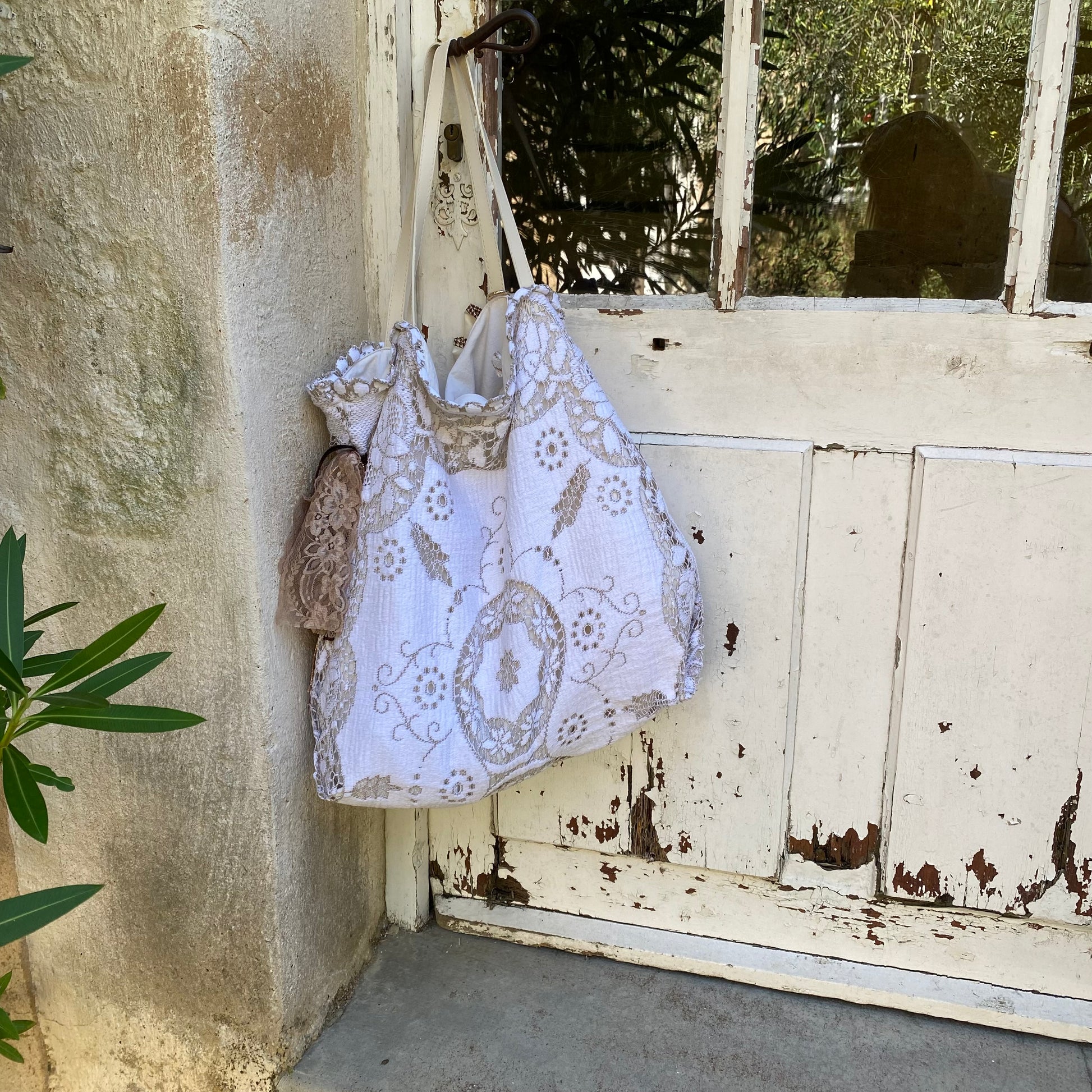 Adoptez le cabas Paulette, fait main et unique en dentelle et lin ancien upcyclé, et profitez de la livraison offerte sur inspirationdailleurs.net