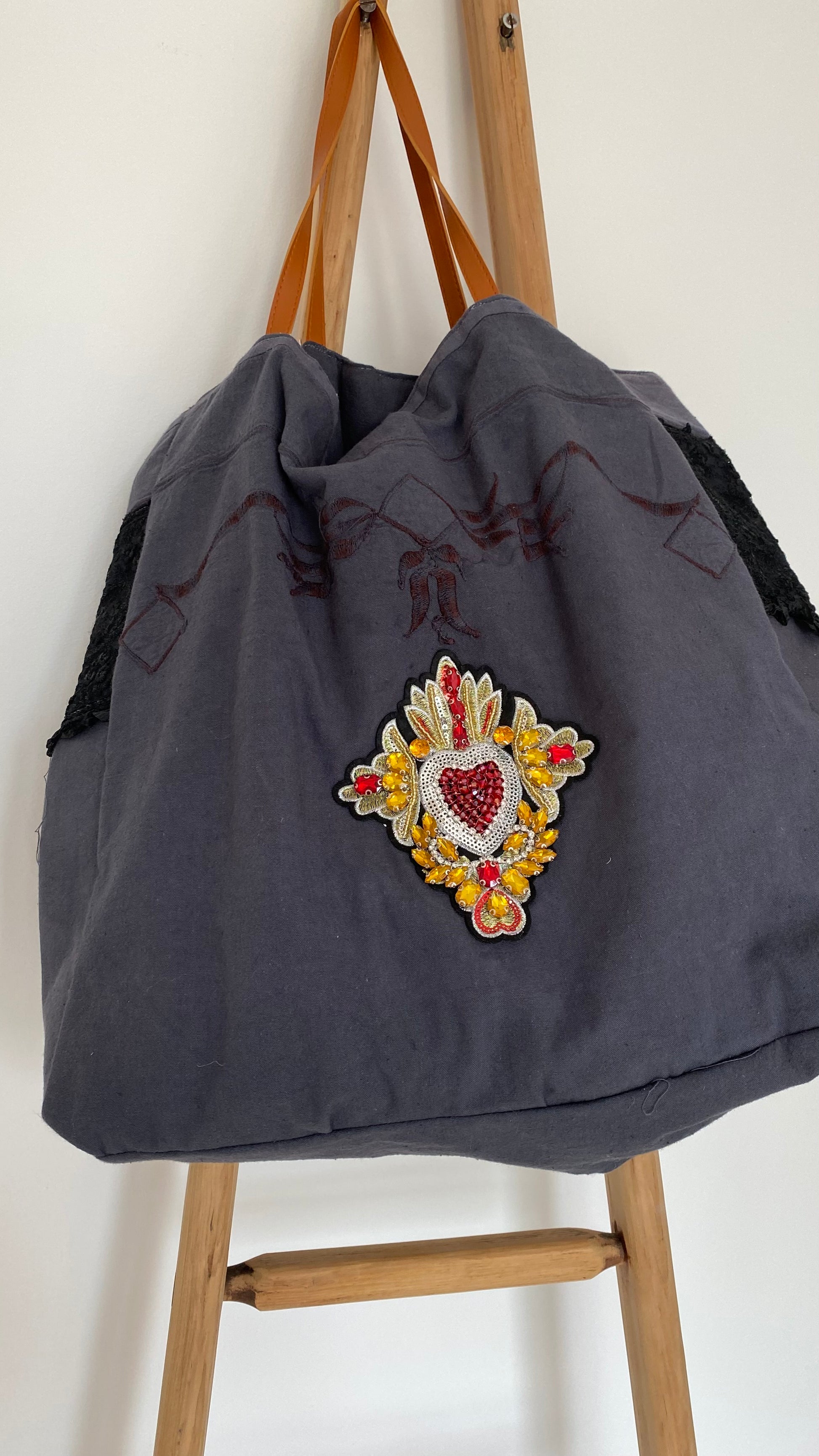 Cabas Simone – Grand cabas artisanal en textiles anciens upcyclés